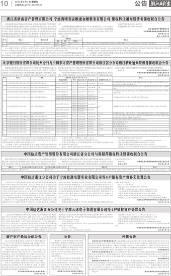 中国信达浙江分公司关于宁波杜湖电器实业有限公司等8户债权资产包补充处置公告