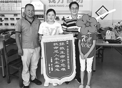 | 小女孩获救后,家长给朱爱娟和另外2名队员送来锦旗 |