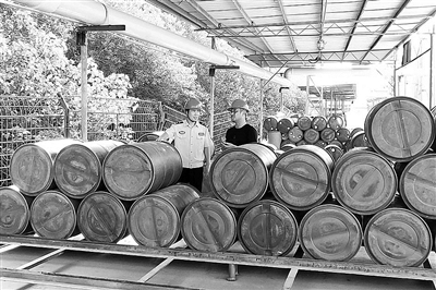 近日,台州市公安局椒江分局章安派出所民警对辖区易制爆危险化学品企业安全管理制度落实、存放场所设置等情况进行检查指导,严防危险品流入社会带来危害。 通讯员 何文斌 摄