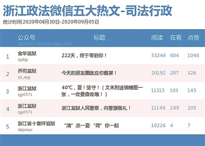 本期司法行政榜,“金华监狱”一跃而起,攻下两榜第一,《222天,终于等到你!》一文获得53246阅读量,1046个点赞。文章讲述了金华监狱封闭执勤222天后终于解封,字里行间,让人感受到监狱民警的忠诚与担当。