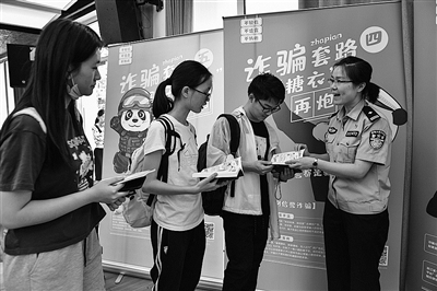 开学季是电信网络诈骗案件的高发期,新生们防范意识薄弱,最容易被不法分子侵害。9日,杭州西湖区公安分局求是派出所民警将校园安全课堂搭到了浙江大学紫金港校区报到点。他们梳理出大学生最容易上当的各类诈骗手段,对新生进行集中宣传教育。