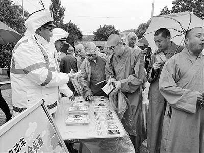 近日,临海交警在大田街道对宗教人员开展交通法规宣传,传递安全出行理念,进一步增强他们的安全意识。