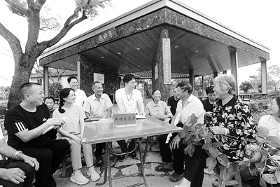 9月10日,台州市路桥区螺洋街道水滨村,路桥区纪委、监委的党员干部和公安民警一起正在认真聆听群众心声。最近,路桥区纪委、监委以“民情直通车”的方式直通村居、社区,与基层党员干部和群众促膝交谈,聆听他们最想说的心里话。蒋友青 摄