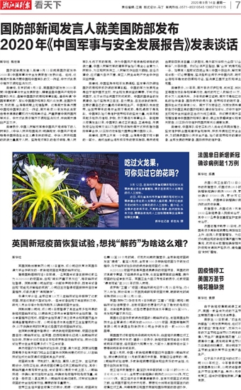 国防部新闻发言人就美国防部发布 2020年《中国军事与安全发展报告》发表谈话