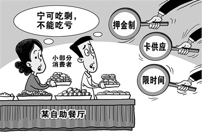 当前,在餐饮业纷纷响应杜绝浪费的新风尚之下,一直难以摆脱“浪费”标签的自助餐厅,也正从自身特点出发,通过一系列诸如押金制、卡供应、限时间等办法来减少浪费。