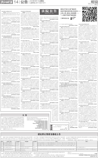 嘉兴市秀洲区人民法院(2020)浙0411民初3043号 张春霆:本院受理原告台州银行股份有限公司嘉兴王江泾小微企业专营支行与被告张春霆信用卡纠纷一案,现依法向你公告送达应诉通知书、起诉状副本、举证责任通知书、合议庭组成成员通知书、证据副本及传票。自本公告发出次日起经过60日即视为送达。提出答辩状、举证的期限分别为公告送达期满后的15日、30日内,并定于举证期满后的第3日下午14时30分(遇法定节假日顺延)在本院第六法庭公开开庭审理,逾期将依法缺席裁判。嘉兴市秀洲区人民法院(2020)浙0411民初3574号 高建林:本院受理原告俞星雄与被告高建林借款合同纠纷一案,现依法向你公告送达应诉通知书、起诉状副本、举证责任通知书、合议庭组成成员通知书、证据副本及传票。自本公告发出次日起经过60日即视为送达。提出答辩状、举证的期限分别为公告送达期满后的15日、30日内,并定于举证期满后的第3日下午14时30分(遇法定节假日顺延)在本院第六法庭公开开庭审理,逾期将依法缺席裁判。