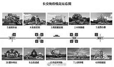 2020年国庆北京天安门广场及长安街沿线花卉布置方案公布。今年天安门广场中心将布置“祝福祖国”巨型花篮,长安街沿线建国门至复兴门也将布置10处各具特色的主题花坛。花卉布置工作于9月16日凌晨进场施工,预计9月25日左右完工亮相。天安门广场国庆花篮写有万众一心、祝福祖国,篮内摆放有全国各省、自治区、直辖市、港澳台的代表花卉以及富有吉祥寓意的果实。
