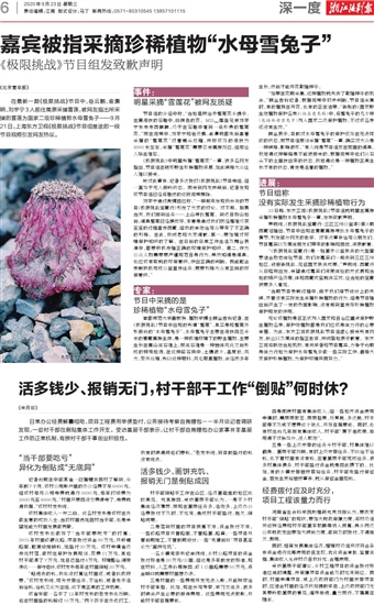 “如果在花期采集,这种植物就失去了散播种子的机会。”顾垒告诉记者,根据视频中初步判断,节目组采集时,有的植株在开花,也有的正在结果,“新版的《国家野生动植物保护名录》(征求意见稿)中,将雪兔子的几个种(包括水母雪兔子)列入国家二级保护植物,不过该名录还没有生效。”