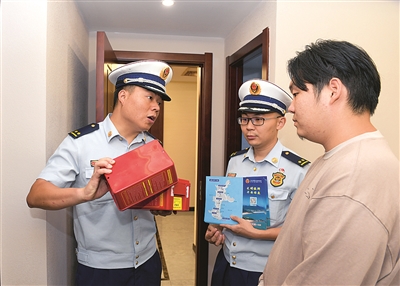 “靠山吃山的道理大家都懂,一定要把山上这些宝贝护好了。”在龙沙一区5幢404室,消防人员一边检查室内配备的消防设施,一边要求老板认真做好长假期间游客入住后的消防安全宣传,并将一叠印有普陀山旅游导图的消防宣传手册放在客厅显眼位置。