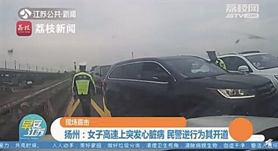 近日,江苏扬州民警在高速上巡逻发现,一患有先天性心脏病的女子因事故受惊吓,引起心脏不适,躺在路边,120救护车也被堵在路上。民警当机立断,逆行近20公里反向疏通,接到救护车后,又一路开道,护送患者送医,所幸因救援及时,女子已转危为安。