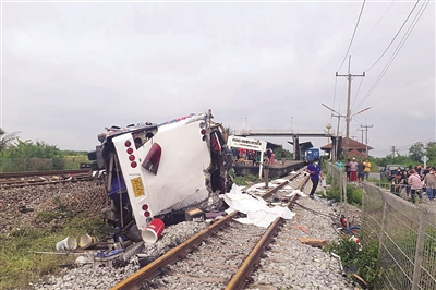 泰国中部 火车与巴士相撞
