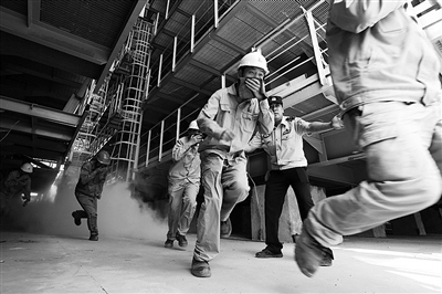 10月13日上午,岱山县公安局民警来到舟山绿色石化基地二期施工现场,组织员工开展应急逃生模拟演练,手把手开展灭火器使用培训,并为工人们讲解防灾减灾相关知识,提高企业员工提高灾害风险治理能力。邹训永 张志龙 摄
