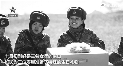 喀喇昆仑高原,海拔5300米,女兵背30多斤装备巡线。当天参加巡线的新疆军区某合成团信息保障队的8名女兵中,有3名都是10月初生日,班长利用午休时间为她们准备了生日惊喜——来自家人的祝福视频。妈妈一声叮嘱,女兵感动落泪。