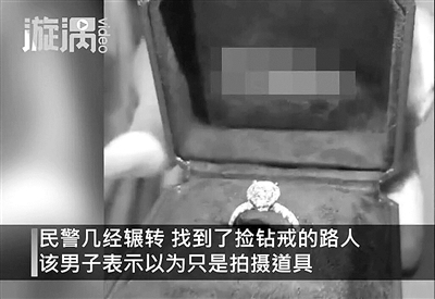 近日,福建厦门一对新人在拍婚礼MV时,弄丢了价值10多万元的钻戒。失主报警后通过监控发现,钻戒被一名路人捡走。民警几经辗转找到捡钻戒的路人时,该男子只以为是拍摄道具,没想到竟是2克拉的真钻戒。