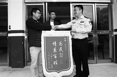 近日,3名江西籍民工来到临海市公安局杜桥派出所送上锦旗,感谢民警千方百计帮他们要回了6.2万元工钱。因事先没有和老板签订劳动合同,3名民工讨薪困难重重,所幸民警伸出援手,这才讨回了辛苦钱。