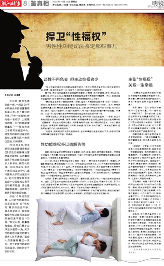 历经10年规范发展,人们对性功能的认知逐渐加深,但“性权利”意识仍远远不够。据不完全统计,目前我省全年性功能司法鉴定的维权案不超过100例。“较之以前,数量是有增加,但也只是冰山浮出水面的一角,关于性功能司法鉴定的意义很多人并不清楚。”鉴定人员普遍有着这一共识。至于女性性功能的司法鉴定,目前则处于空白状态。