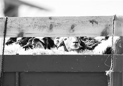 这是10月22日在内蒙古二连浩特口岸拍摄的蒙古国捐赠的羊。