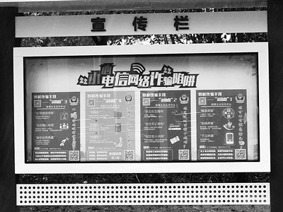 在湾南德胜东苑,小区内悬挂了防诈宣传横幅,宣传栏里张贴了诈骗常见手段。社区负责人介绍,外来人员前来办理居住证时,先要接受反诈知识宣讲。