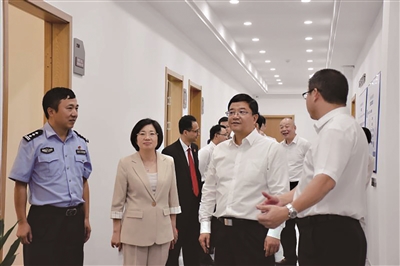 夏文星一行来到民安联勤警务站、南太湖新区社会矛盾纠纷调处化解中心、杨家埠街道社会矛盾纠纷调处化解中心等地,认真听取有关情况介绍,实地考察各功能区实质性作用发挥情况。