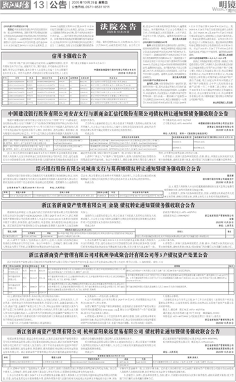 中国建设银行股份有限公司安吉支行与浙商金汇信托股份有限公司债权转让通知暨债务催收联合公告