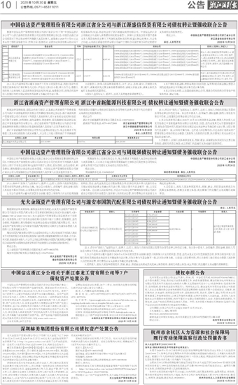 中国信达资产管理股份有限公司浙江省分公司与浙江源盛信投资有限公司债权转让暨催收联合公告