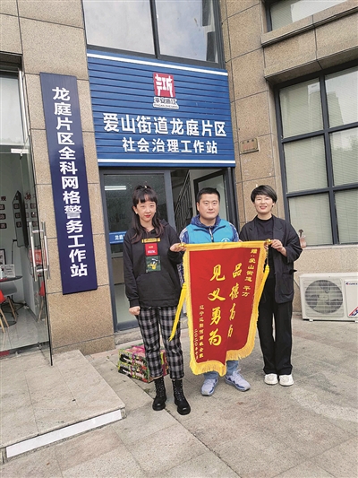 本报讯 “小伙子,那天真是太谢谢你了,我婆婆说当时那么多人路过,只有你停下来帮了她。她现在还在医院治疗,叮嘱我们一定要把锦旗送到你手中。”10月31日下午,湖州市民马女士和弟媳一同带着锦旗来到吴兴区爱山街道龙庭片区社区治理工作站,向专职网格员平方表示感谢。