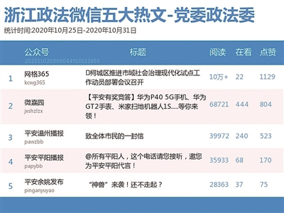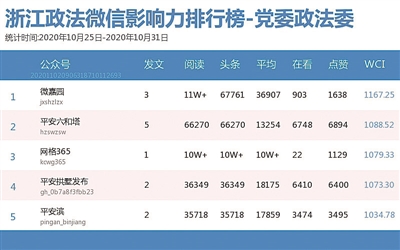 本期政法委榜,“微嘉园”“平安六和塔”“网格365”分获冠、亚、季军。作为新崛起的小将,“网格365”凭借《柯城区推进市域社会治理现代化试点工作动员部署会议召开》一文,一举夺得热文榜榜首位置。