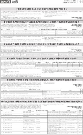 中国信达资产管理股份有限公司浙江省分公司与浙江省浙商资产管理有限公司债权转让通知暨债权催收联合公告