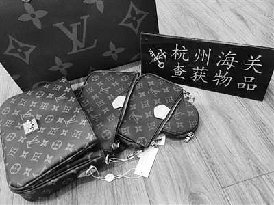 本报讯 近日,杭州海关所属温州海关在一件申报品名为手提包的出口邮包中,查获17个侵权皮包。为逃避监管,不法分子将这些包大包套小包,企图蒙混过关。