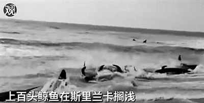 上百头鲸鱼在斯里兰卡搁浅 当地人通宵推回海里