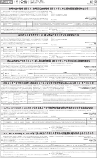 BCC Asia Company 3 Limited与宁波金融资产管理股份有限公司债权转让通知暨债务催收联合公告