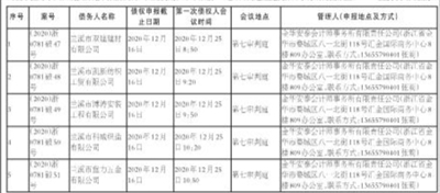 上述5家企业第一次债权人会议时间、地点及债权申报地点、联系方式见附表。第一次债权人会议由本院召集,已依法申报债权的债权人有权参加。参加会议的债权人系法人或其他组织的,应提交营业执照、法定代表人或负责人身份证明书;系自然人的应提交个人身份证明。如委托代理人出席会议,应提交特别授权委托书、委托代理人的身份证件或律师执业证,委托代理人是律师的还应提交律师事务所的指派函。兰溪市人民法院