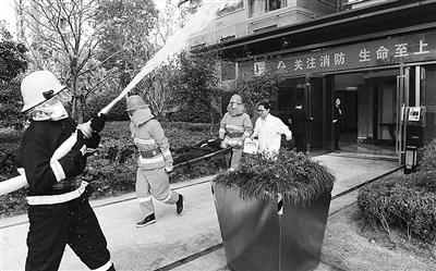 11月10日,杭州祥符街道蓝孔雀社区孔雀蓝轩小区举行以“关注消防、生命至上”为主题的119消防宣传周活动,邀请大关消防救援站的消防人员来到现场,通过模拟演习、器材讲解和灭火逃生体验等形式,向群众宣传消防安全知识,提高消防安全意识。