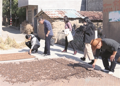 告别了“老娘舅”,下一站就到了风景如画的东茗乡。秋日的后岱山村阳光静谧,清新自然,沿着小巷往里走,整洁、美丽的庭院,一幅新农村“画卷”徐徐展开。在村口写着后岱山村的治村之道——干部,铁面无私;党员,敢于担当;乡贤,尽展其才,三句标语朴实又有力量。后岱山村村书记王国洋当起了“两家”的临时导游,兴致勃勃地介绍着村里的改变,特别是在外乡贤的回归,对新农村建设、乡村治理起到的帮助。作家和书法家们还走进村民家中,与村民进行交谈,感受新农村建设给当地村民带来的变化。