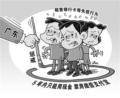 记者11月11日从广东省公安厅获悉,广东开展打击“两卡”专项行动以来,有2421人因出售出租出借银行账户、个人银行卡等失信行为被惩戒,他们将受到5年内只能使用现金消费,不能使用移动支付功能、不能注册支付宝账户和开通微信支付等惩戒。