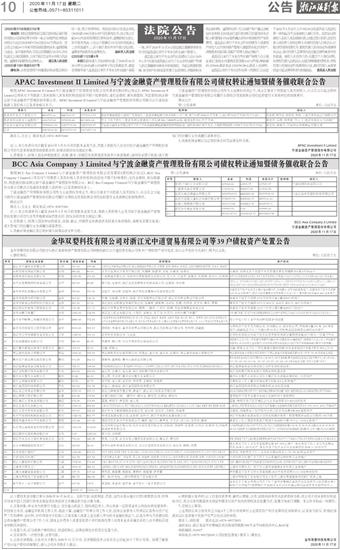 APAC Investment II Limited与宁波金融资产管理股份有限公司债权转让通知暨债务催收联合公告
