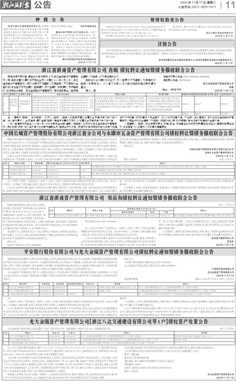 浙江省浙商资产管理有限公司 郑岳和债权转让通知暨债务催收联合公告