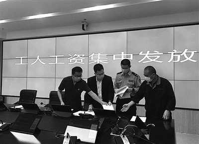 近日,台州市黄岩区法院执行局拍卖掉某处被执行人厂房后,开辟绿色通道,优先将拍卖款发放给被拖欠工资的21名工人。图为工人办理领款手续。通讯员 黄法