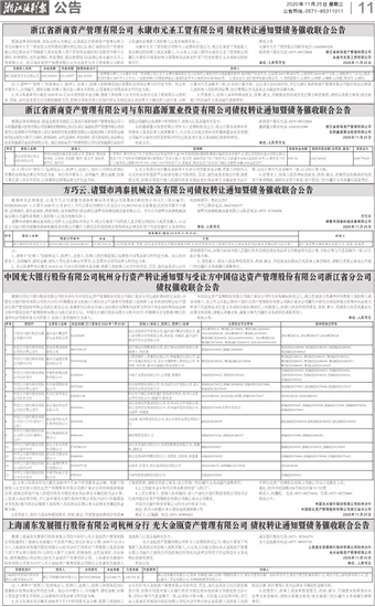 中国光大银行股份有限公司杭州分行资产转让通知暨与受让方中国信达资产管理股份有限公司浙江省分公司 债权催收联合公告