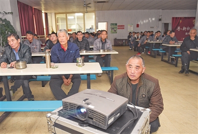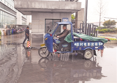 11月25日中午,阮方松开着三轮车来到嘉兴市昶兴喷织有限公司,熟练地将放映机等设备从车上搬进食堂,“趁着工人们的午餐午休时间,放本消防电影给大家敲敲警钟。我得先把设备调试好。”