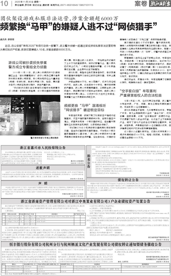 通讯员 廖思思 近日,在公安部“净网2020”专项行动统一部署下,武义警方侦破一起通过架设游戏私服非法运营的特大侵犯知识产权案,抓获犯罪嫌疑人10名,涉案金额超6000万元。
