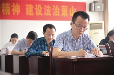 同时,萧山区普法工作紧抓“关键少数”:2015年以来,积极推进政府部门向区人大常委会述法常态化,全区34家(次)区政府部门向区人大常委会述法;2014年年底,区委组织部、区司法局联合出台《关于开展非人大常委会任命领导干部任前法律知识考试的通知》,近6年来,已组织考试28场次,共有299名新任区管干部通过行政法和宪法等知识的考试,实现了非人大任命领导干部任前法律知识考试常态化;自2017年起,全面开展公务员“学法用法三年轮训行动”,截至2019年10月,全区4690名公务员(含参公人员)均接受了一次宪法、行政法和公务员法的学习培训。