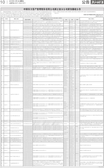 中国东方资产管理股份有限公司浙江省分公司债务催收公告