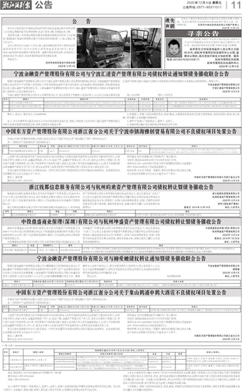 中国东方资产管理股份有限公司浙江省分公司债务催收公告