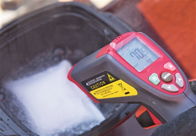 考虑到安全性,消防员将实验场地放在了露天环境中进行,并准备了计时器、红外测温仪、若干瓶装容器等道具,以准确记录实验的相关数据。