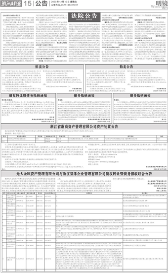 光大金瓯资产管理有限公司与浙江望津企业管理有限公司债权转让暨债务催收联合公告