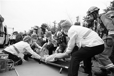 这是象山县公安局联合当地政府职能部门开展的一次危化品车辆道路交通事故应急处置社会大联动演练。宁波全市公安机关有关负责人及象山当地职能部门领导观摩了演练,并给予高度评价。
