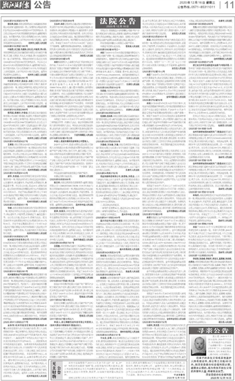 蔡东炜、张俞:本院受理原告浙江永联融资担保有限公司诉你们追偿权纠纷一案,已审理终结,现依法向你们公告送达(2020)浙0102民初3197号民事判决书。自公告之日起60日内来本院领取民事判决书,逾期即视为送达。如不服本判决,可在公告期满后15日内,向本院递交上诉状及副本,上诉于杭州市中级人民法院。逾期本判决即发生法律效力。杭州市上城区人民法院