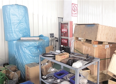 | 整治前:厂区内堆放的货物堵塞安全出口 |