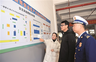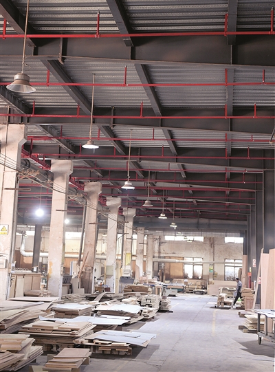 走进生产车间,记者看到顶棚上已经安装好醒目的红色消防水管和喷淋。看到现场堆放的成品地板,雷文聘还是提出了整改要求,“车间内必须严格按要求设置消防疏散通道的标线,通道严禁出现违规占用的现象。”